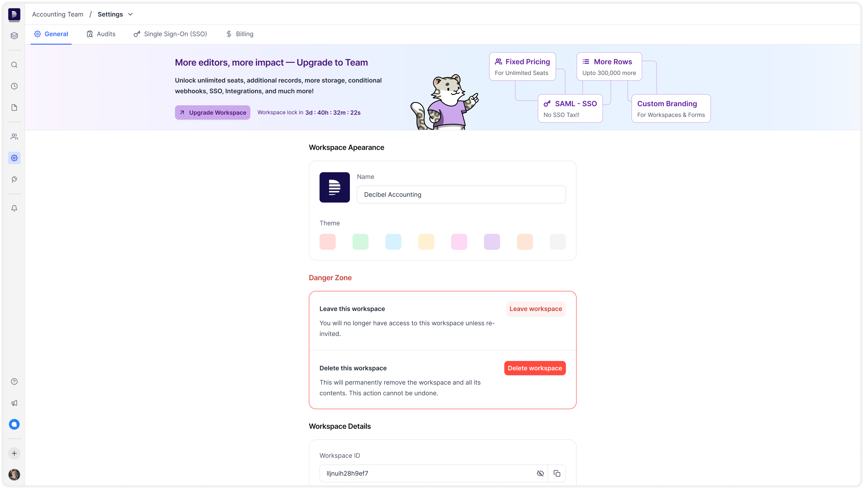 Now only shows workspace-level pages like Members, Integrations and Settings.