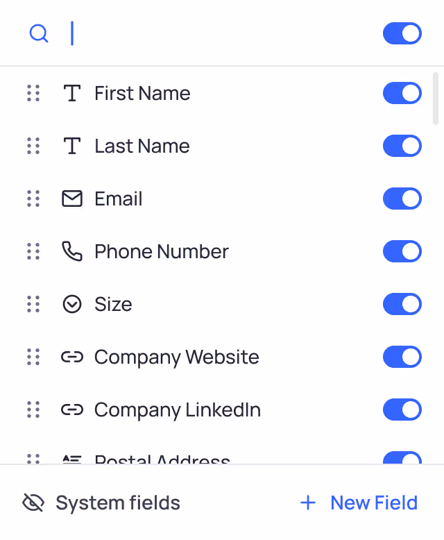 From the toolbar’s fields dropdown, users can choose which fields are displayed on the card.